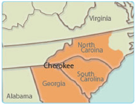 Ureinwohner in den "USA": Karte mit den Cherokee in