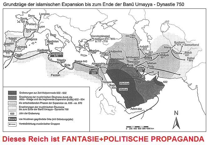 [Gemäss Pressburgs Buch "Good bye Mohammed" ist jegliche muslimische Identität und Besetzung bis 850 reine FANTASIE, ebenso die ersten drei Kalifen sind reine FANTASIE, weil es den Namen "Mohammed" erst ab ca. 850 gab].6.6.747 ca.