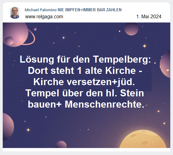 "Lösung für den Tempelberg: Dort steht 1 alte Kirche - Kirche versetzen+jüdischen Tempel über den heiligen Stein bauen+Menschenrechte"