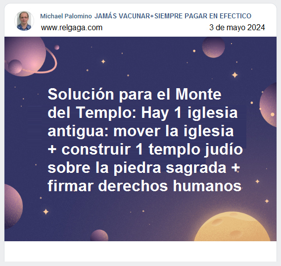 "Solución para el Monte del Templo: Hay 1 iglesia antigua: mover la iglesia + construir 1 templo judío sobre la piedra sagrada + firmar derechos humanos"