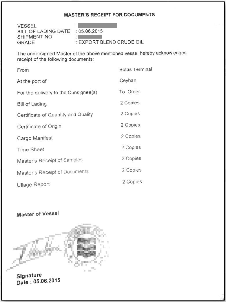 So sieht übrigens eine Quittung des Frachtführers für die Übergabe der für den Weitertransport erforderlichen Ladepapiere aus:
