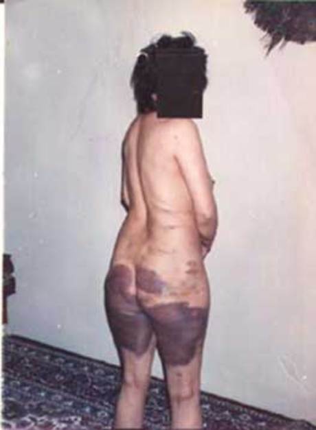 [6] Auspeitschung im Iran, weibliches Opfer mit Blutergüssen durch 50 Peitschenhiebe:
