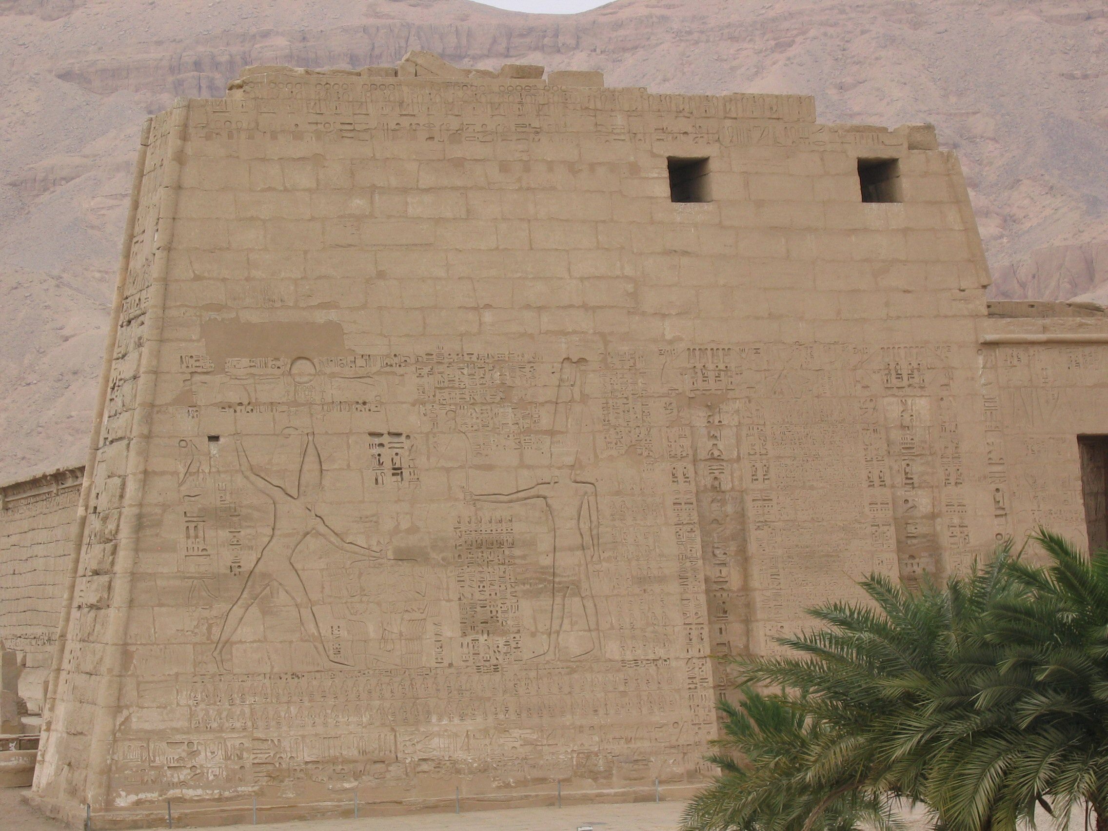 -- Pharaoh Ramesses III.: temple in Medinet Habu, details: http://www.greatcommission.com/egypt/; http://www.bibleplaces.com/2003jan.htm