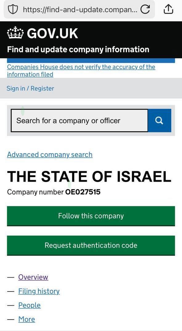 was sie will: The State of Israel: Company number OE027515 https://t.me/Ungeimpfte_Schweiz_kennenlernen/65813