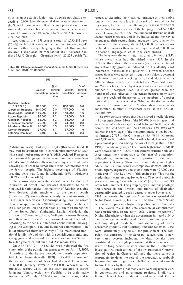 In all other republics, the number of Jews was included under "other nationalities" in the census figures published in April 1971. from: Russia; In: Encyclopaedia Judaica, vol. 14, col. 483