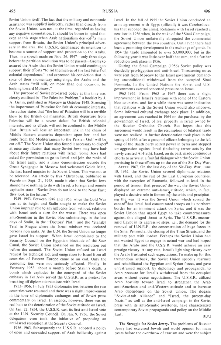Subsequently the U.S.S.R. adopted a policy of open and one-sided support of Arab bellicosity against (col. 495)