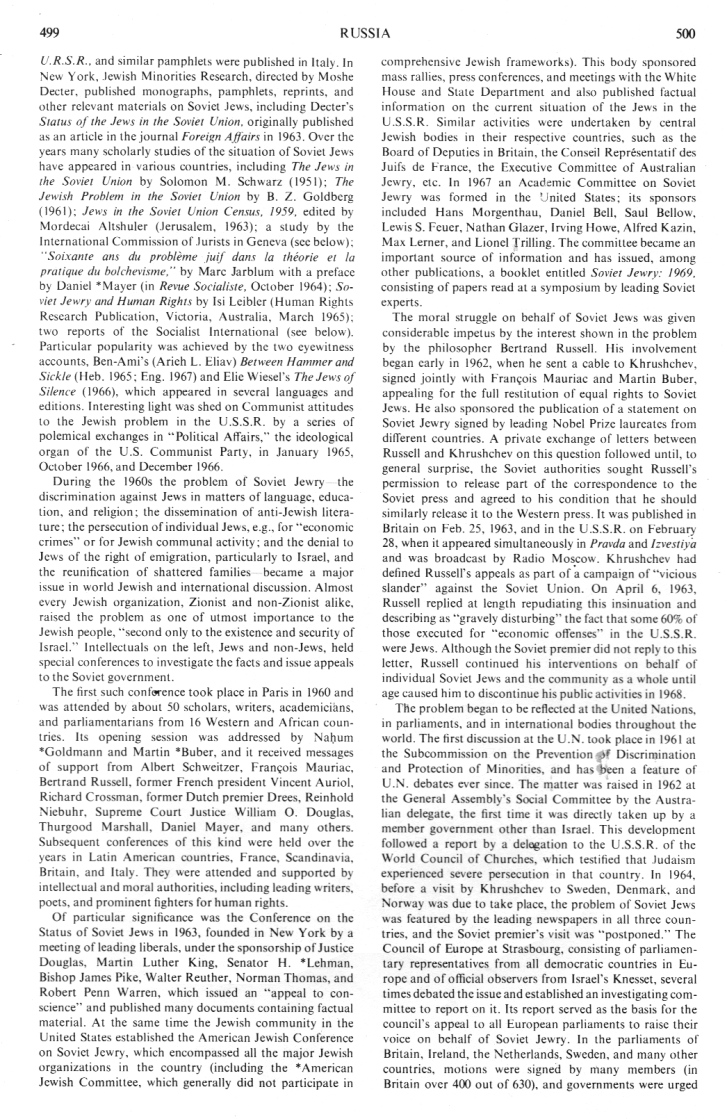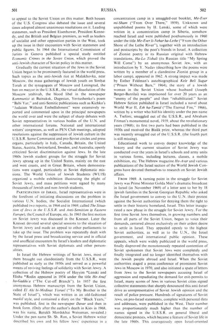 movement of Soviet Jews, mainly of the younger generation, became increasingly the focus of the struggle of world Jewry, the Israel government, and international public opinion for Jewish survival in the U.S.S.R. (col. 503)