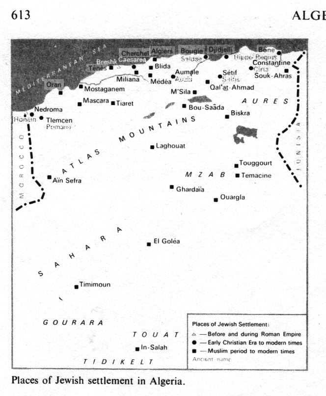 [Mossad] Encyclopaedia Judaica 1971: Algeria, vol. 2, col. 613, map of the [Moses Fantasy] Jewish communities in Algeria