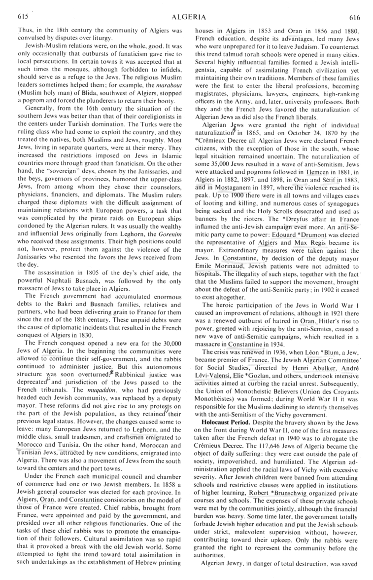 [[Muhammad Fantasy]] Algerian [[Moses Fantasy]] Jewry, in danger of total destruction, was saved (col. 616)