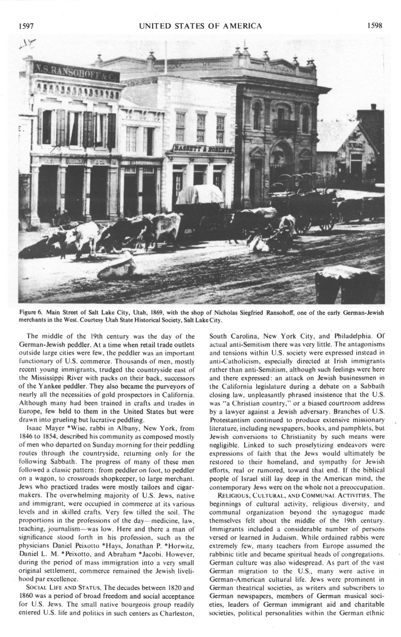 Isaac Mayer *Wise, rabbi in Albany, New York, from 1846 to 1854, described his community as composed mostly of men who departed on Sunday morning for their peddling routes through the countryside, returning only for the following Sabbath. The progress of many of these men followed a classic pattern: from peddler on foot, to peddler on a wagon, to crossroads shopkeeper, to large merchant.