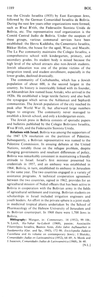 its Bolivian counterpart. In 1968 there were 1,700 Jews in