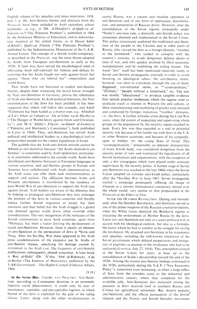 But, despite popular anti-Semitism and the official persecution of the Jewish religion and the [[racist]] Zionist and Jewish Socialist movement (col. 148)