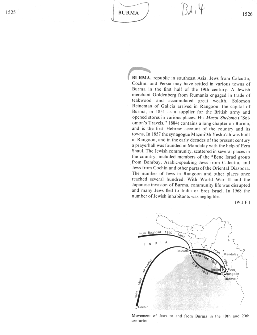 Encyclopaedia Judaica 1971: Burma, vol. 4, col. 1526