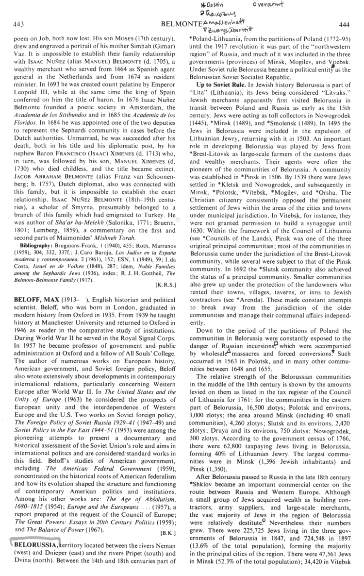 Encyclopaedia Judaica 1971: BSSR, vol. 4, col.