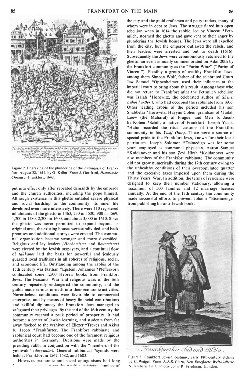 the city and the guild craftsmen and petty traders, many of whom were in debt to Jews. The struggle flared into open rebellion when in 1614 the rabble, led by Vincent *Fettmilch, stormed the ghetto and gave vent to their anger by plundering the Jewish houses.