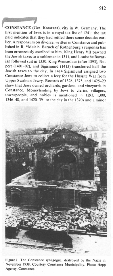 ![]() Encyclopaedia Judaica (1971): Constance, vol. 5, col. 912 |