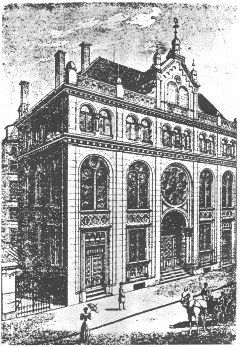 completed in 1902 and burned to the ground on Kristallnacht [[Chrystal Night]], 1938 London, Wiener Library