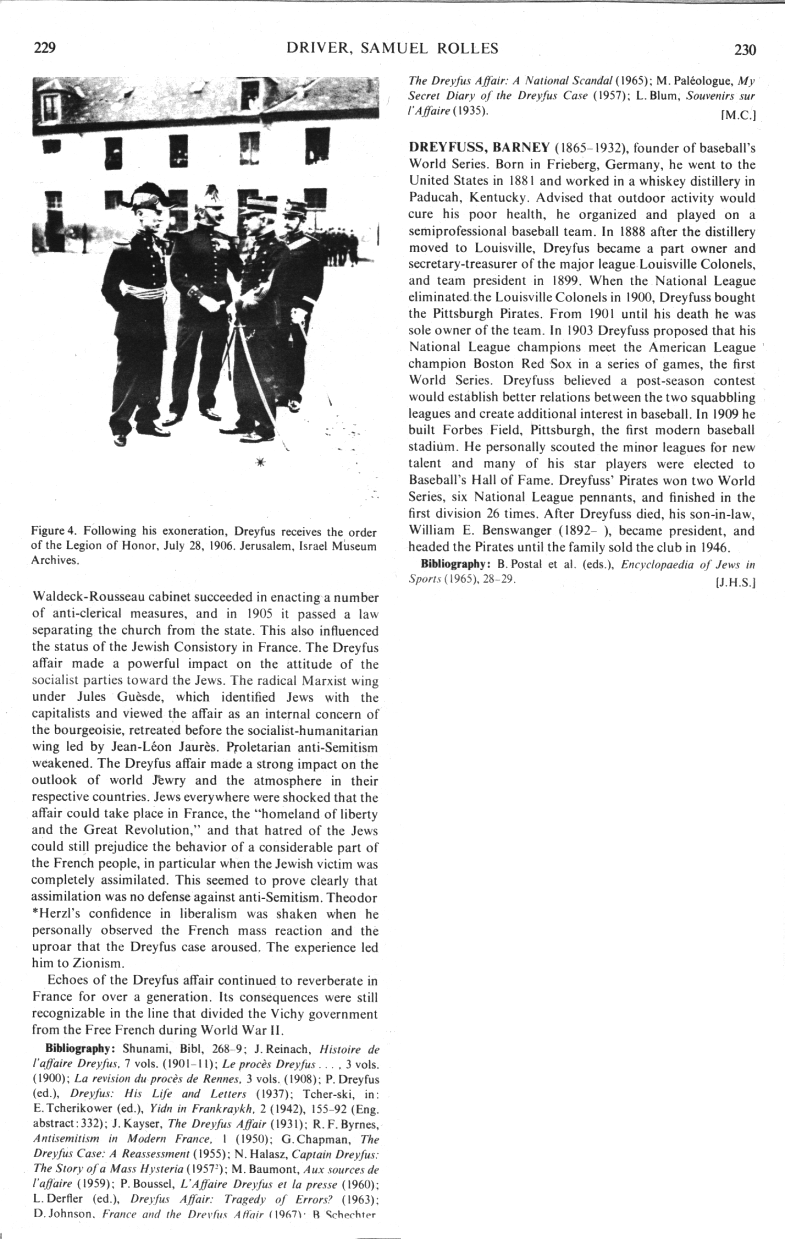 Echoes of the Dreyfus affair continued to reverberate in France for over a generation. Its consequences were still recognizable in the line that divided the Vichy government from the Free French during World War II.> (col. 229)