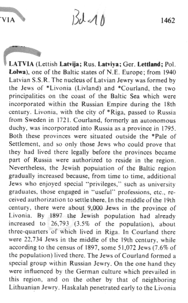 Judaica (1971): Latvia, vol. 10, col. 1463, map