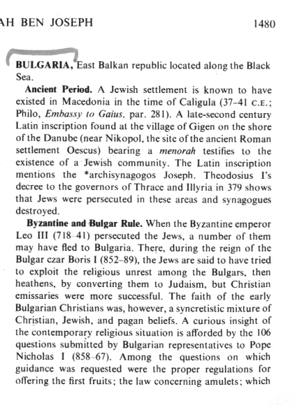 from: Bulgaria; In: Encyclopaedia Judaica 1971, vol. 4