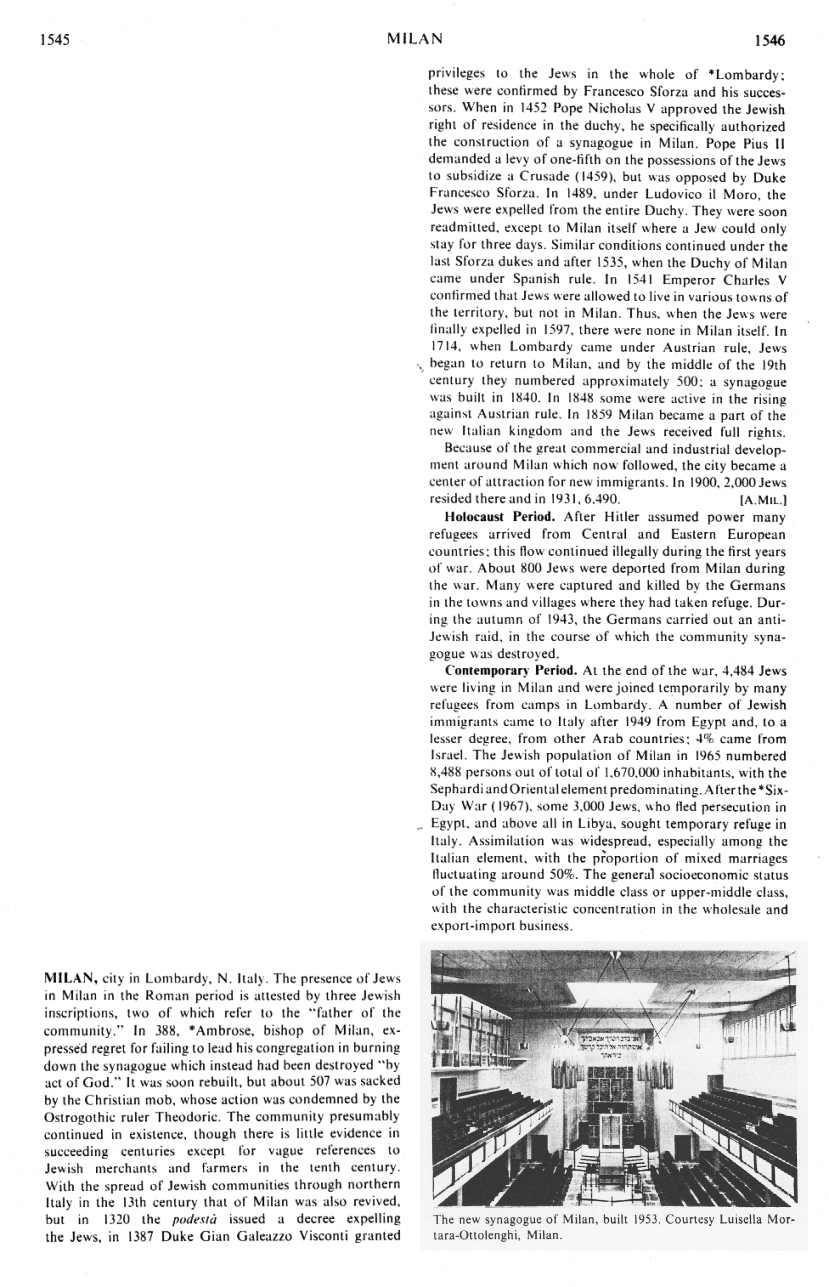 The Jewish population of Milan in 1965 numbered 8,488