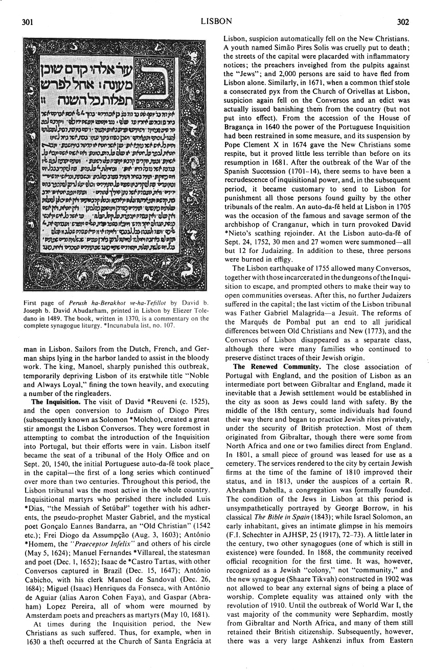 Encyclopaedia judaica: Jews in Lisbon, vol. 11, col.