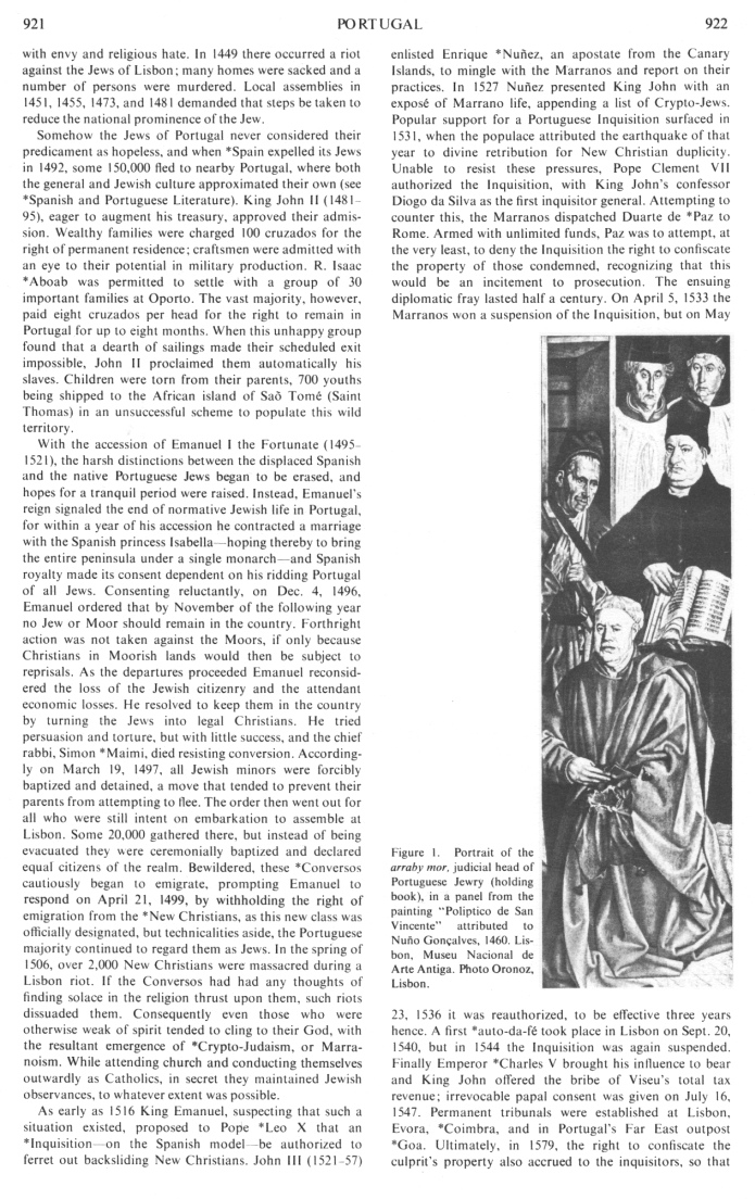 Encyclopaedia Judaica: Portugal, vol.13, col.922: Arraby
