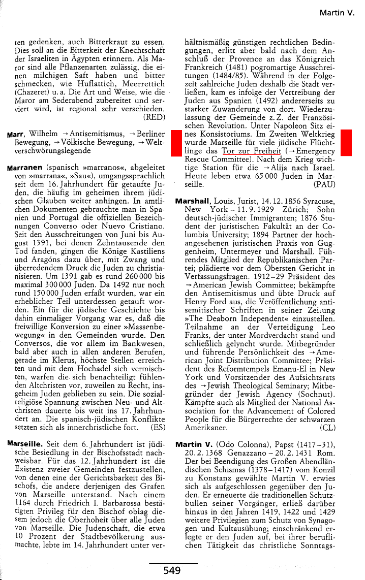 Marseille; In: J.H.Schoeps (Hg): Neues Lexikon des Judentums;