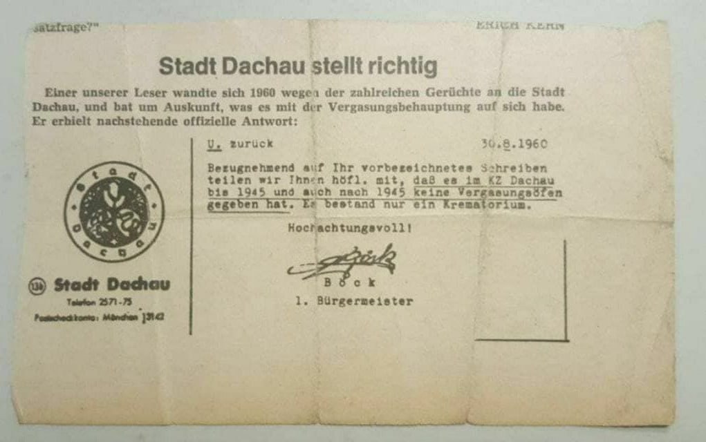 7.9.2025: KZ Dachau: Keine Vergasungsöfen - Dokument von 1960