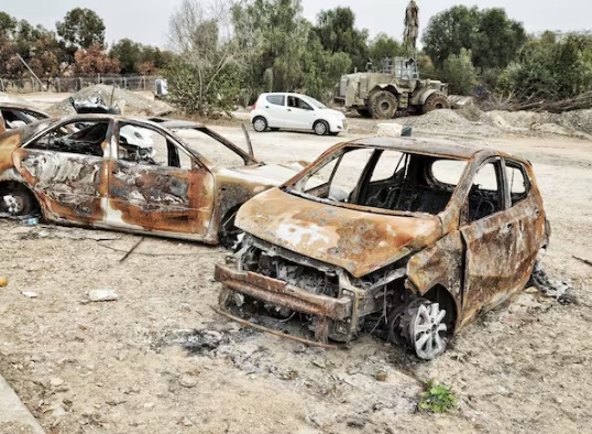 Kibbutz Kfar Aza: Diese ausgebrannten Autos wurden von