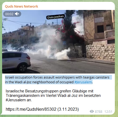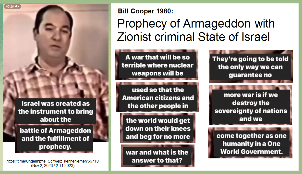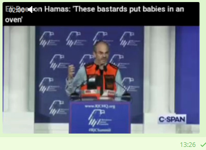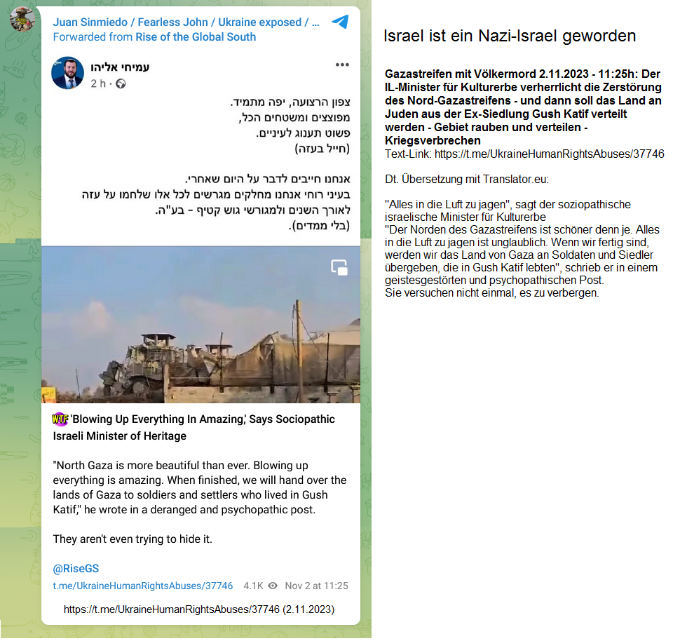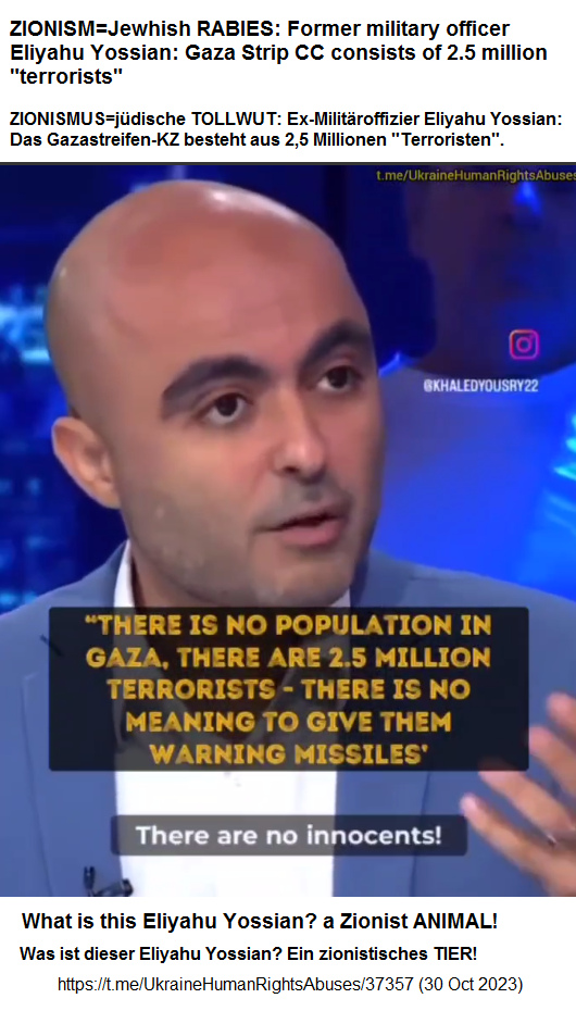 9.10.2023 alle Palästinenser als "menschliche Tiere" (Video-Link).
