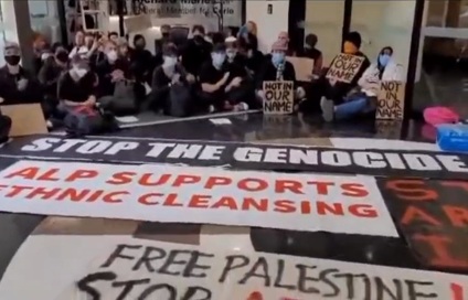 Text: Israel begeht Völkermord gegen Palästinenser. Israel