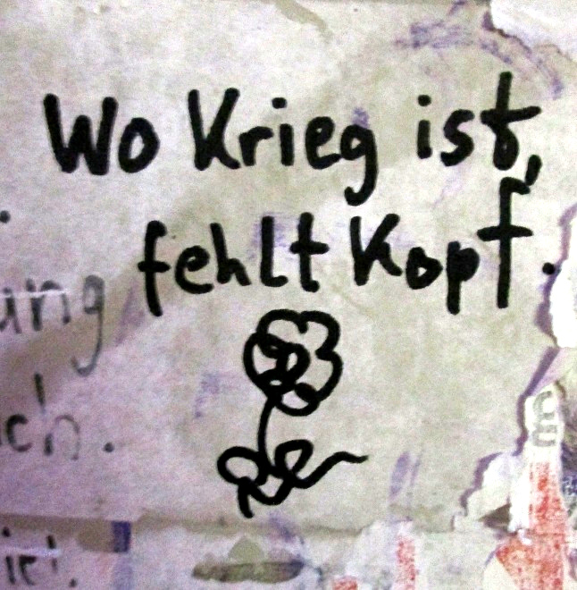 Widerstand mit Graffito am 2.11.2023: "Wo Krieg ist, fehlt