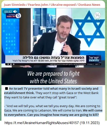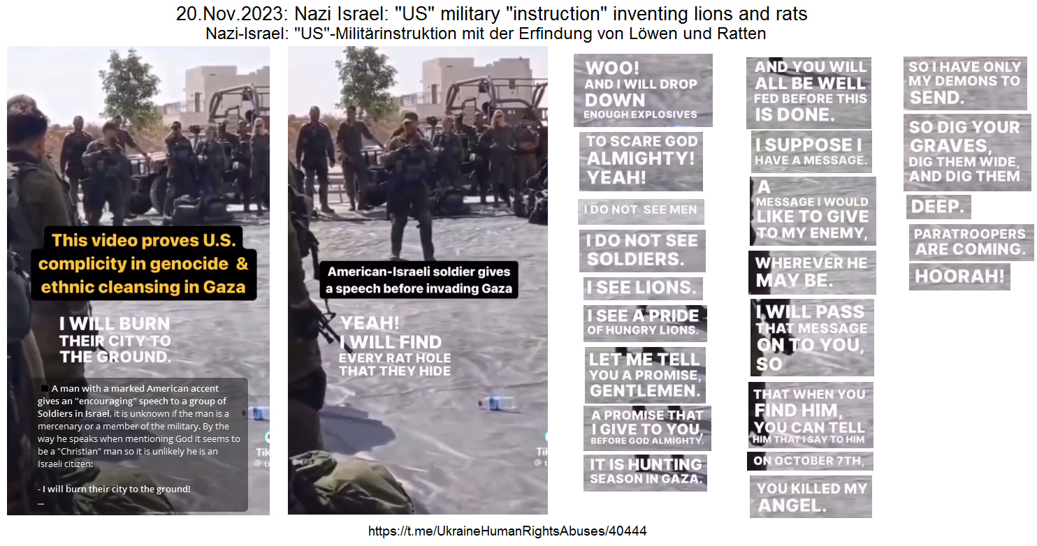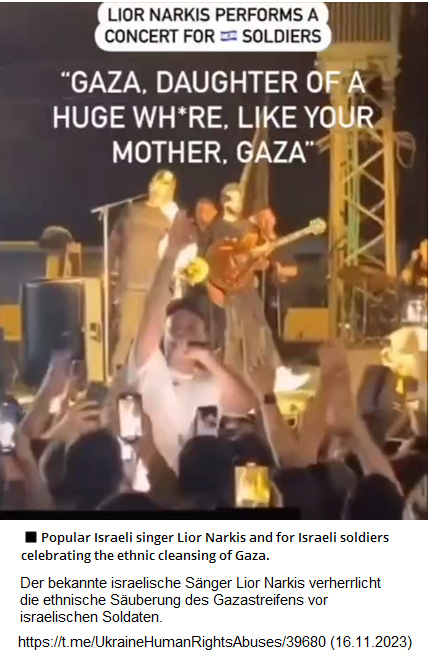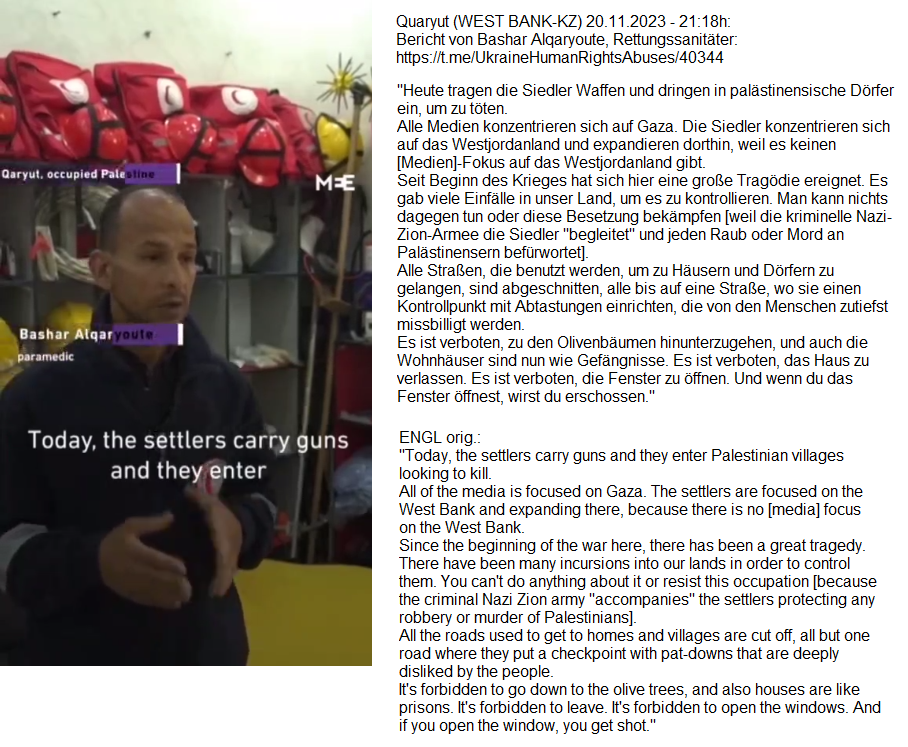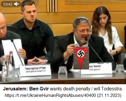 9.10.2023 alle Palästinenser als "menschliche Tiere" (Video-Link).