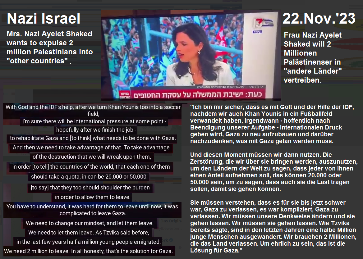 (wollte am 14.11.2023 alle Palästinenser in die ganze Welt