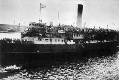 The 74-year-old steamer Struma, (240 tons, 1867) with 767 people crowded on board, left Constanta on December 11, 1941 flying the Panamanian flag. The boat was detained at Istanbul as unseaworthy and remained in the harbor; the passengers were not allowed ashore. British authorities wanted the ship returned to Romania. After two months of negotiations, the ship with broken down engines was towed into the Black Sea where it was found by the Soviet submarine SC-213 and torpedoed, on February 24th. There was one survivor of this tragedy.(http://www.paulsilverstone.com/immigration/Primary/Aliyah/shiplist1.php)