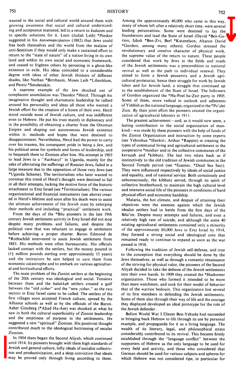 <In 1904 there began the Second Aliyah, which continued until 1914. Its pioneers brought with them high standards of [[Moses Fantasy]] Jewish and general culture, lofty ideals of socialist collectivism and productivization, and a deep conviction that ideals may be proved only through living according to them. (col. 751)