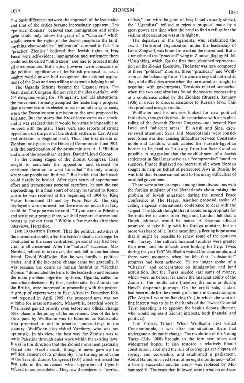 [Uganda expedition negative for mass settlement - Rothschild money for Fantasy Jewish racist settlements in Palestine - "Ugandists" don't give up - Fantasy Jewish Territorial Organization under Zangwill for Uganda - "practical" wing of racist Fantasy Zionism enforced]