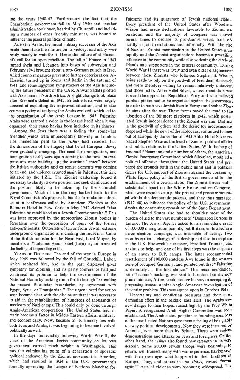 During the war years the [[racist Fantasy]] Zionist movement itself had almost completely stripped away all tentativeness or vagueness from its ultimate aims and it had abandoned, at least for the moment, any public concern with the nature of the new [[Fantasy]] Jewish society. That did not mean that within Palestine itself, and within the world [[racist Fantasy]] Zionist movement, the various parties died not continue to jockey for control of (col. 1058)