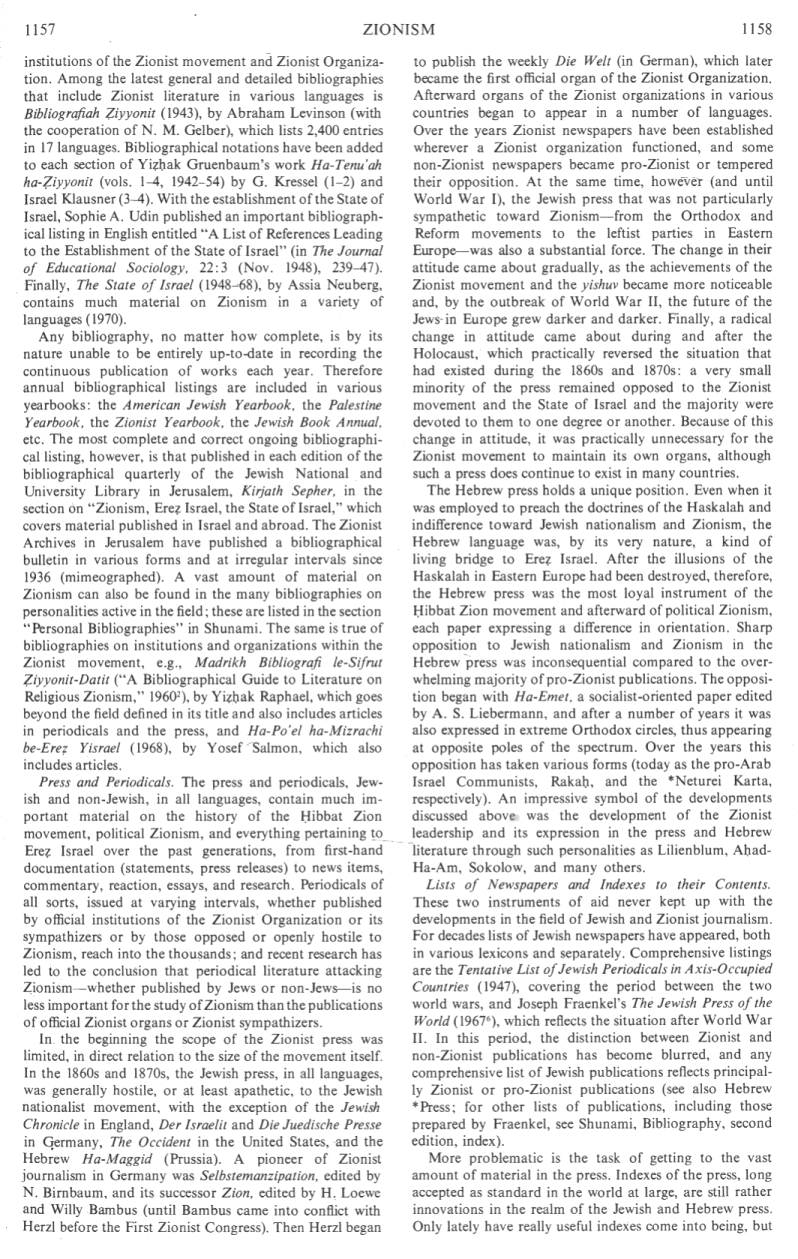 No precise distinction between Fantasy Israel and Fantasy Zionism - bibliographies - press and periodicals - newspapers and contents - encyclopaedias and lexicons - journals, research institutes, and archives