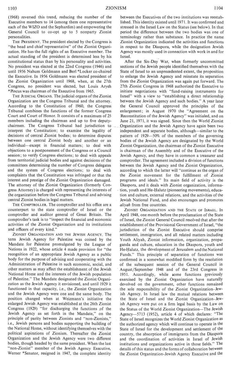 The details of this status and the forms of collaboration between the [[racist]] Zionist Organization-Jewish Agency Executive and the (col. 1104)