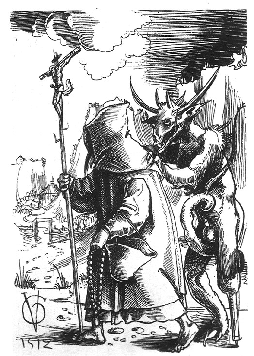 [11] Teufel verfolgt Mönch, Federzeichnung 1512 - Mönche sind meistens Schwule:[12] Kaiser Konstantin, Portrait mit Heiligenschein: