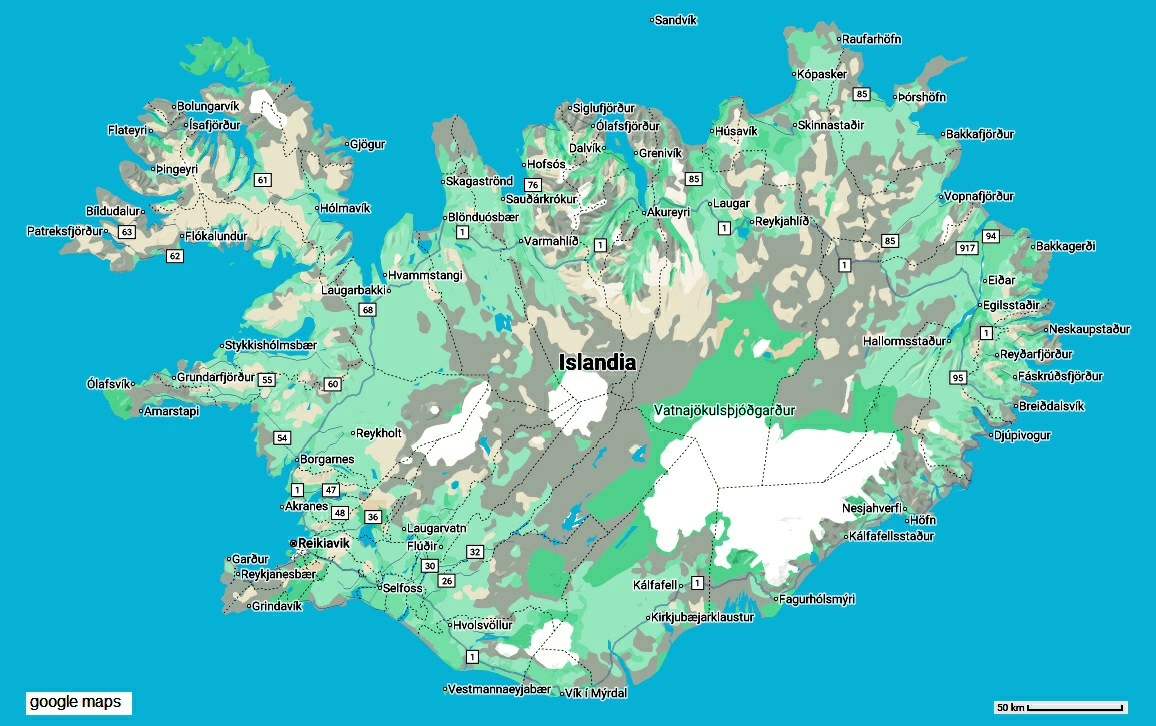 Map 26: Map of Iceland: google maps