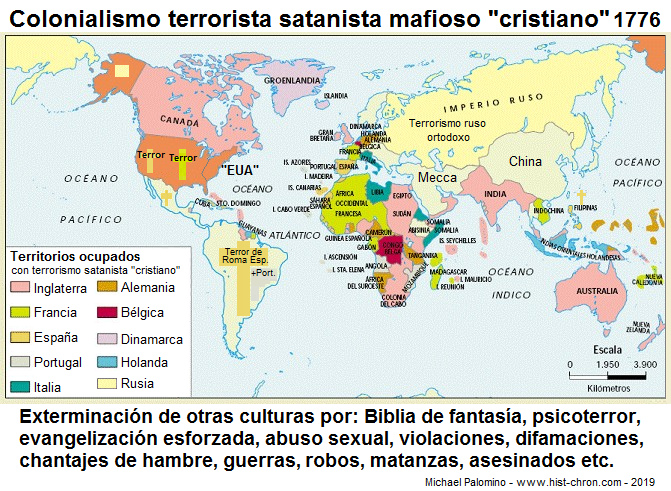 Mapa mundial del colonialismo terrorista criminal satanista "cristiano" en el mundo, la mafia satánica "cristiana" en apr. 1776 [7]