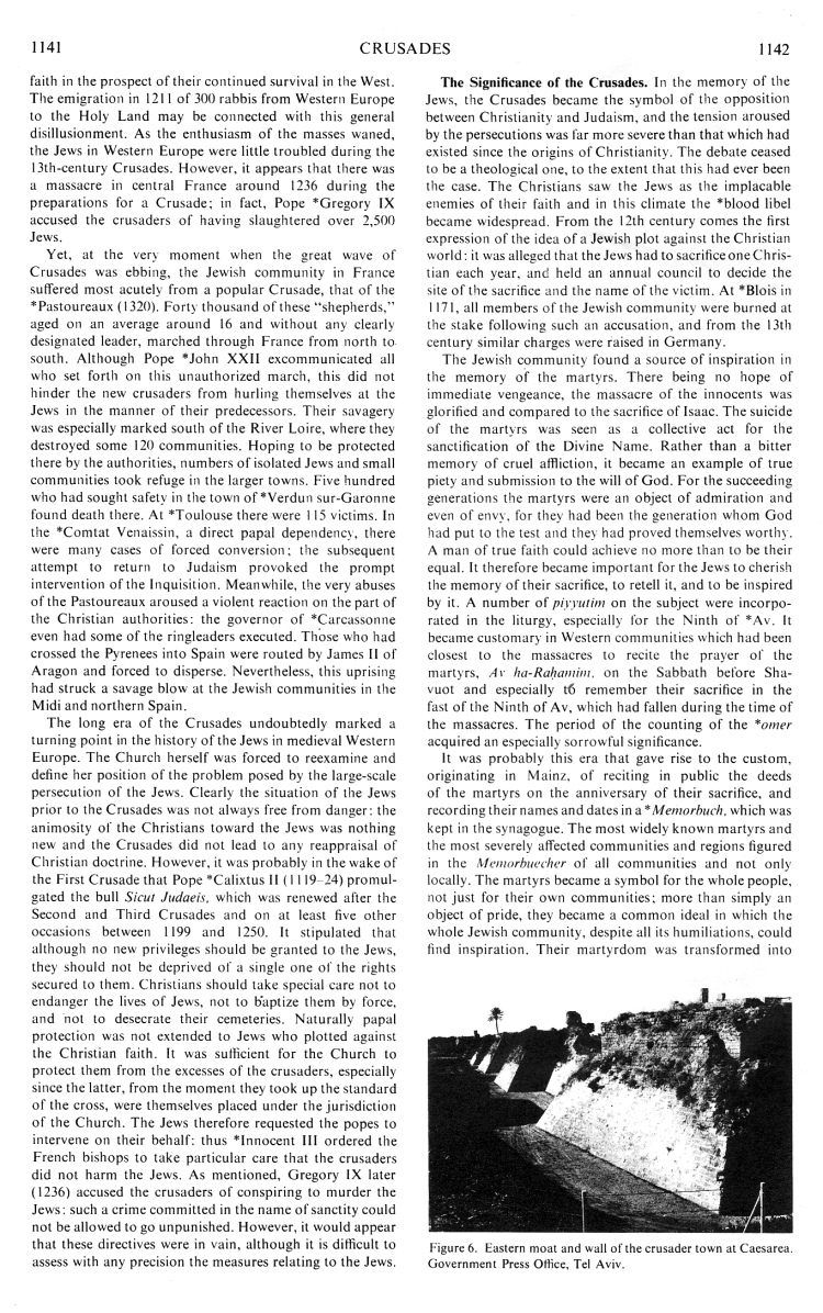 Encyclopaedia Judaica 1971, vol.5, col. 1142: Eastern moat and wall of the crusader town at Caesarea. Government Press Office, Tel Aviv.
