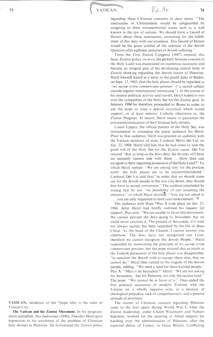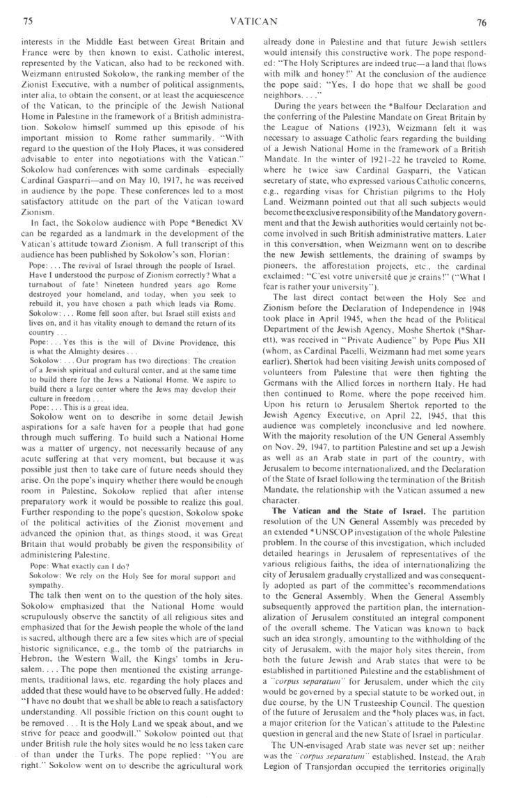 -- Ch. Weizmann: Trial and Error (1949),index s.v. Vatican