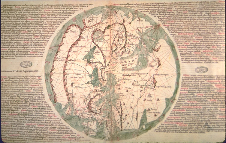 Zudem sind einige Weltkarten einbezogen, die die europäischen Vorstellungen der damaligen Zeit verdeutlichen.