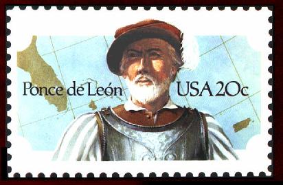 [27] Briefmarke mit Poncé de León 1982, im Hintergrund Florida: http://www.yunque.net/lgonzalez/Ponce.htm (April 2005)