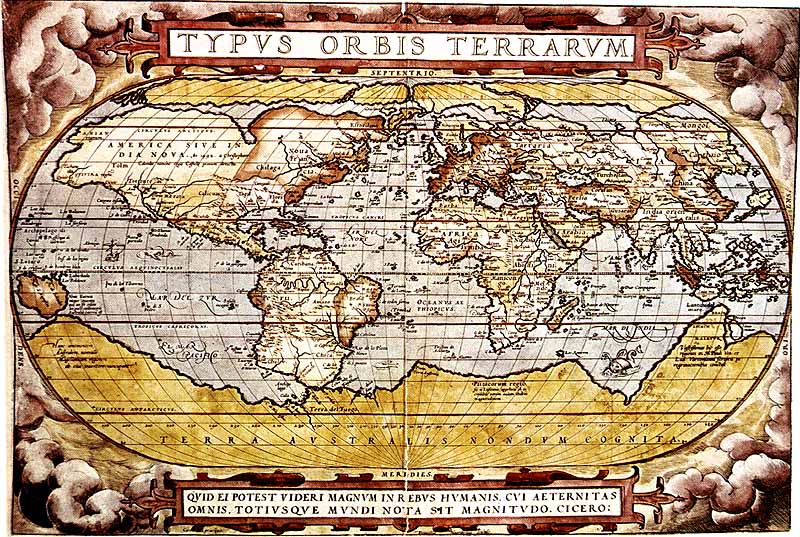 [76]  Cornelius de Jode: world map "Hemispheriu Ab Aequinoctiali Linea, Ad Circulu Poli Arctici... Poli Atarctici", 1593: http://mappa.mundi.net/locus/locus_012/