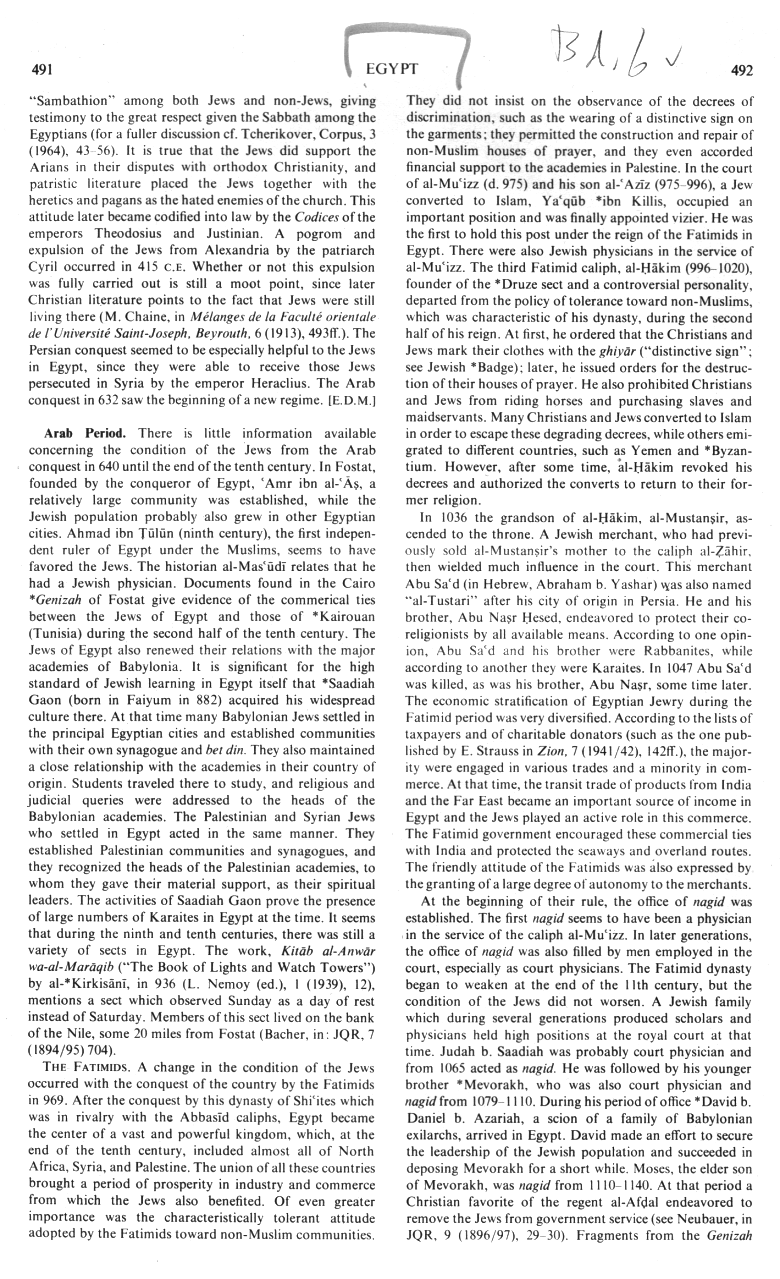 [Mossad] Encyclopaedia Judaica (1971): Egypt, vol.6, col. 491-492